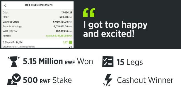 This is the first time I have won above 1 Million RWF. I was sitting with my wife in the sitting room at night and when I cashed out, it went through. I got too happy and excited. There was nothing different I did with this bet, I believe it was just luck and my time to shine.